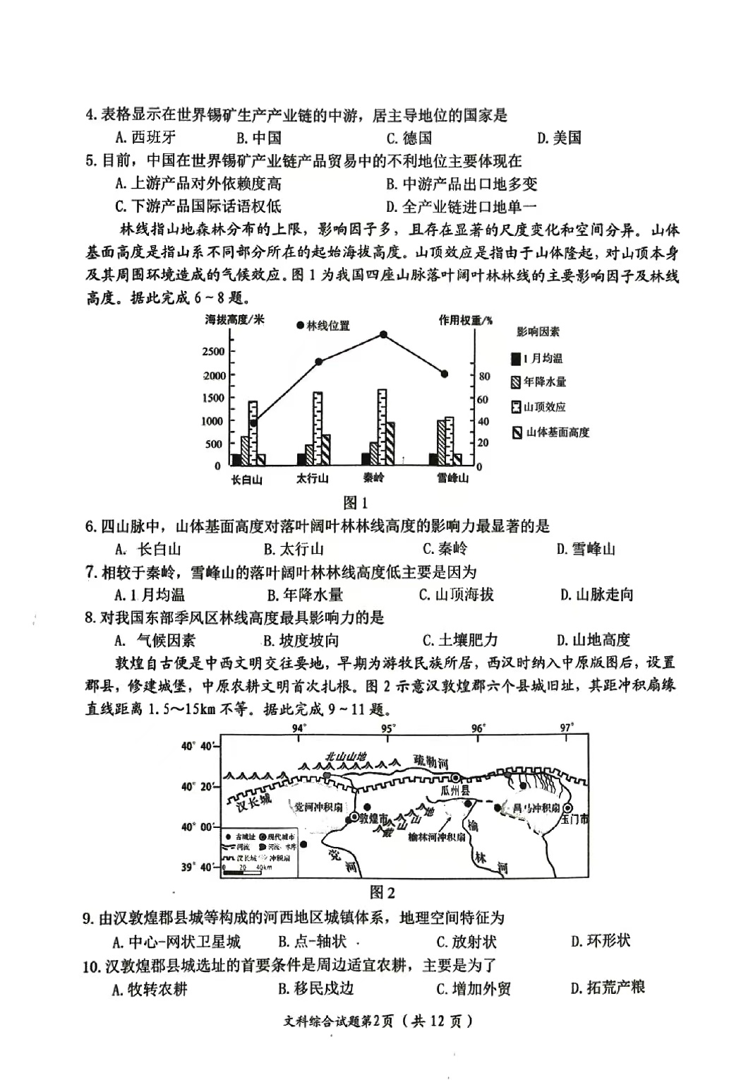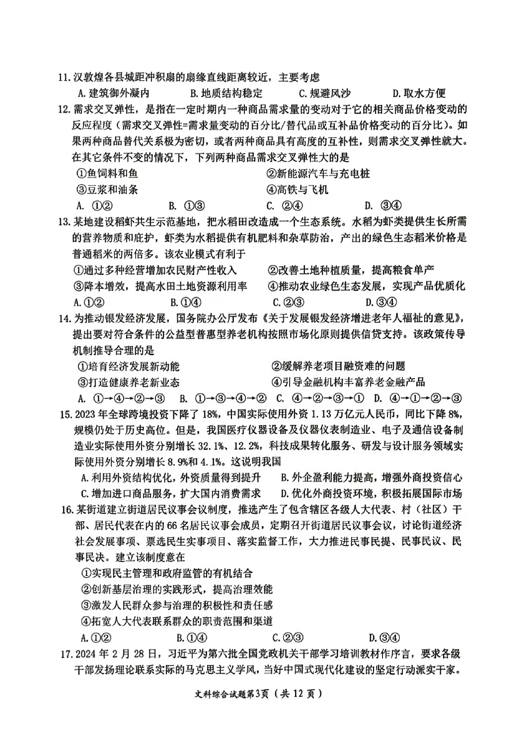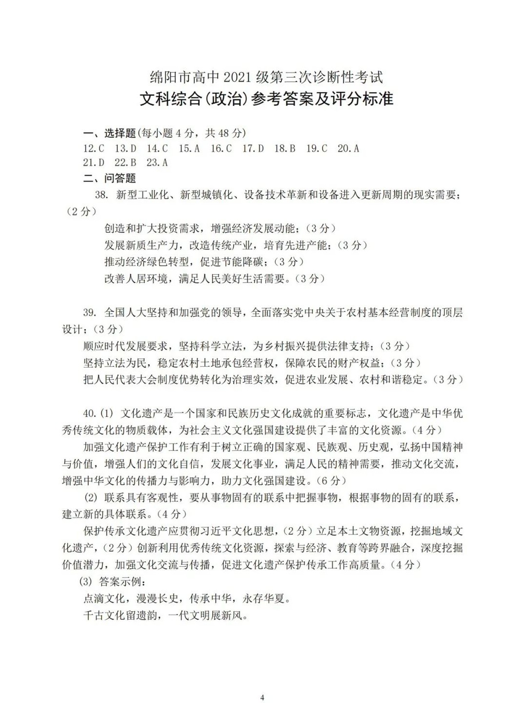 4、2024年绵阳三诊文综试题及答案