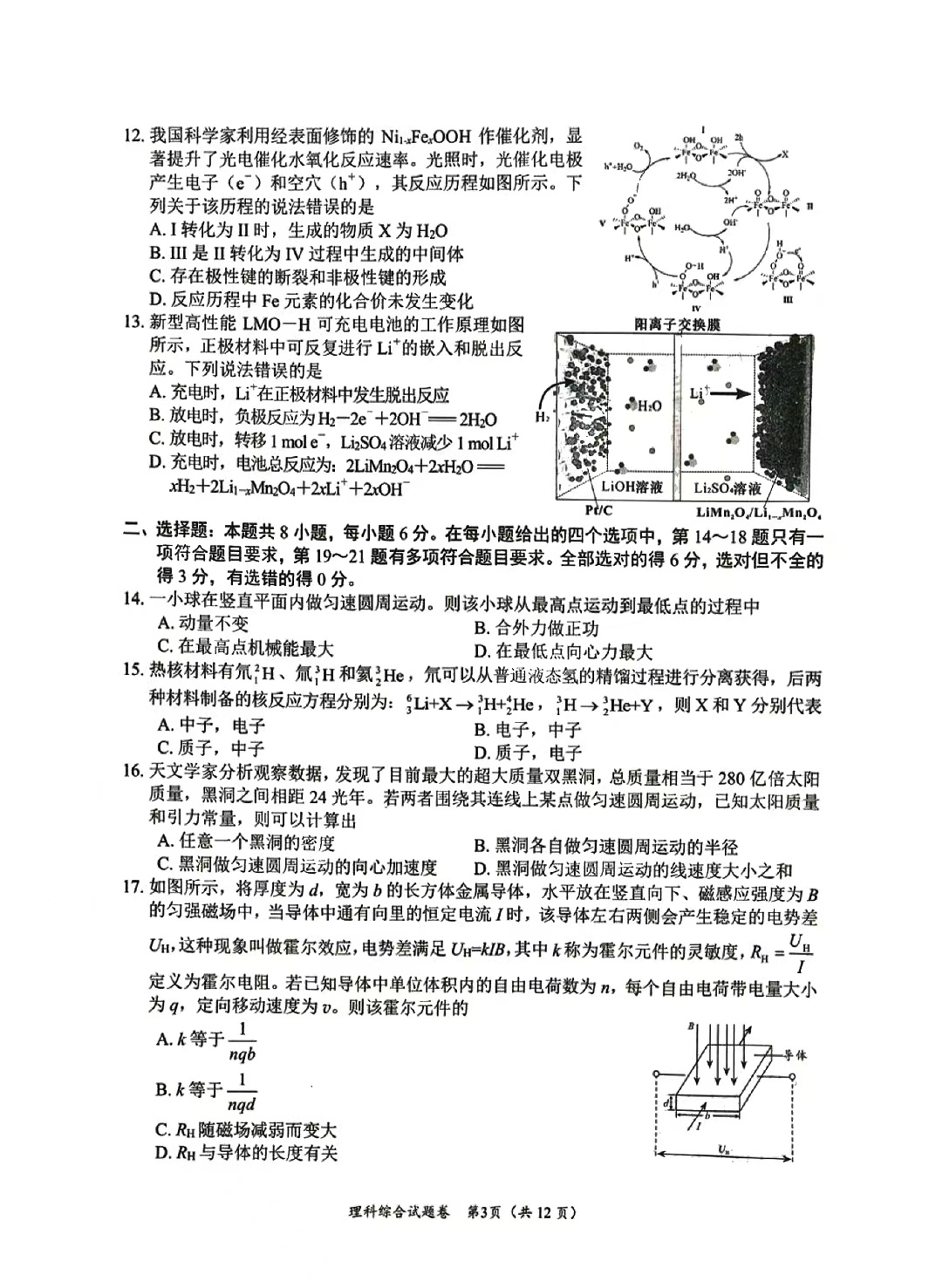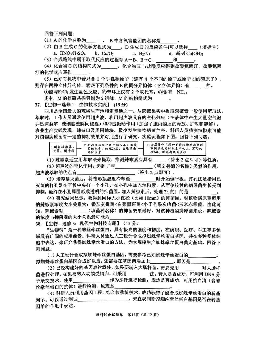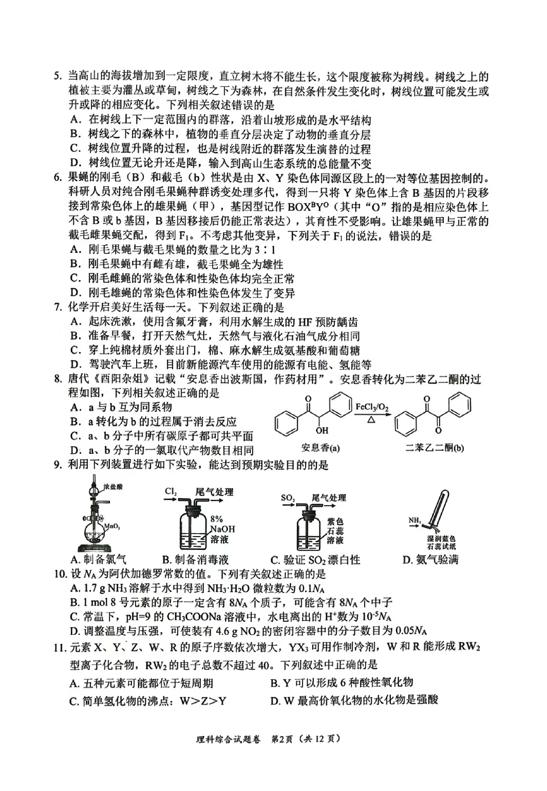 5、2024年绵阳三诊理综试题及答案
