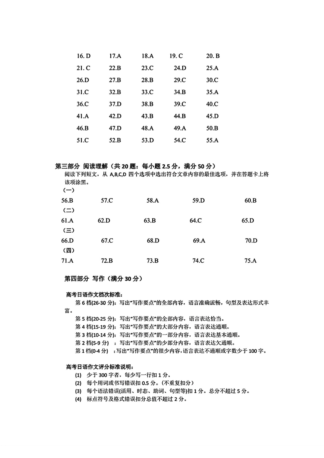 6、2024年绵阳三诊日语答案