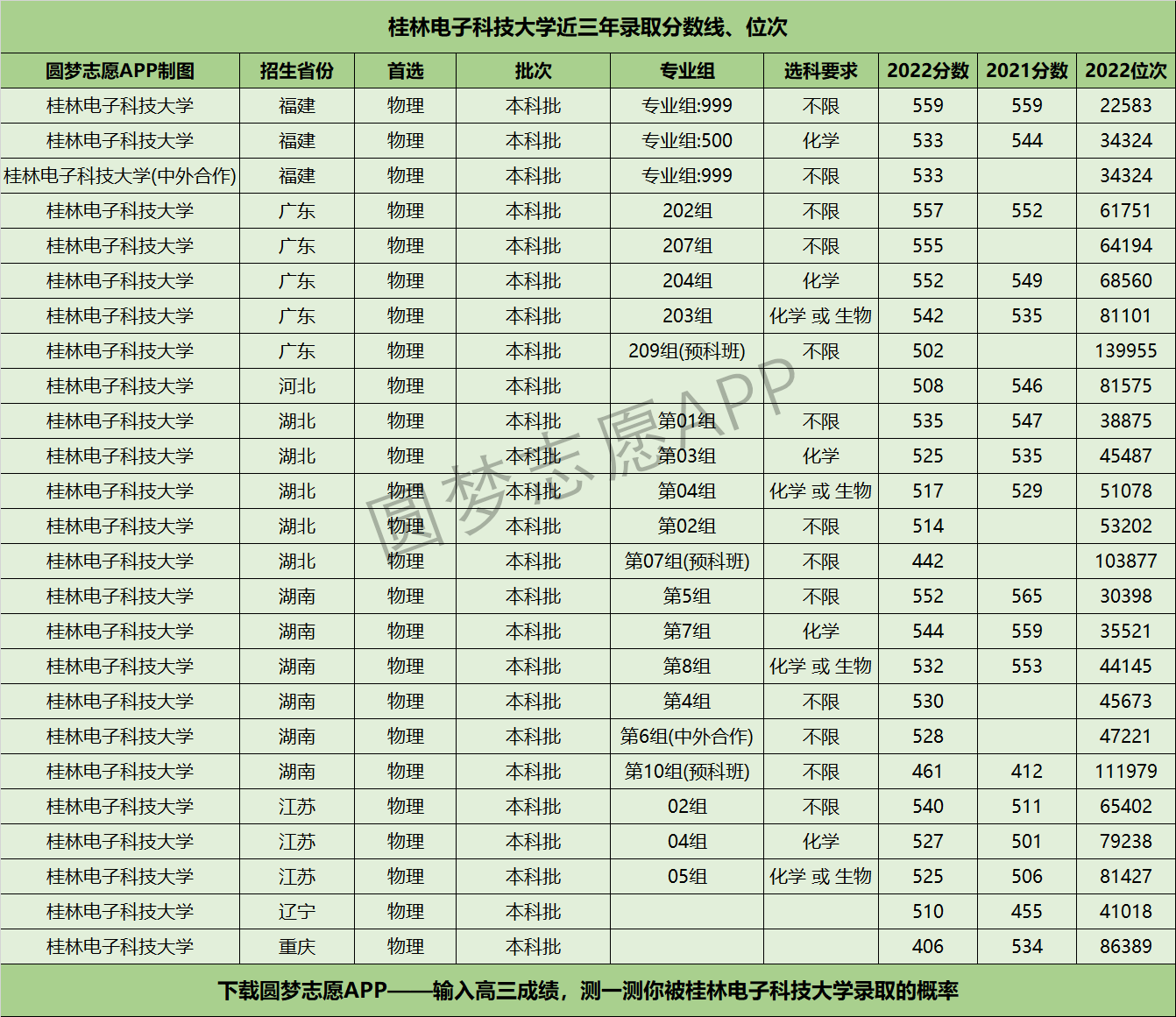 三、桂林电子科技大学近年录取分数线及位次【首选物理版】