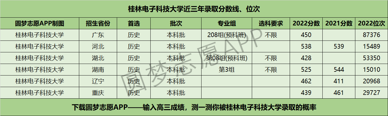 四、桂林电子科技大学近年录取分数线及位次【首选历史版】