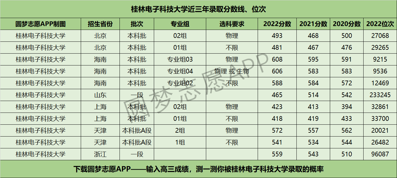 五、桂林电子科技大学近年录取分数线及位次【6选3省份】