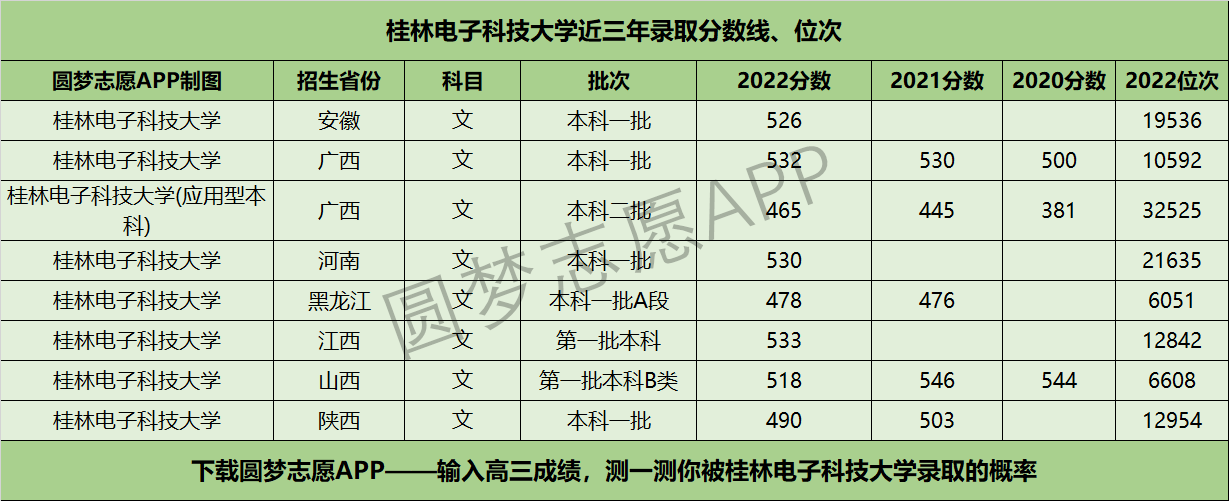 二、桂林电子科技大学近三年录取分数线及位次【文科版】