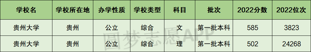 贵州大学的理科最低录取分数为502分,对应全省位次为24268,文科类最低录取分数为585分,对应全省位次为3823,由此可见贵大在贵州的认可度还是很高的。