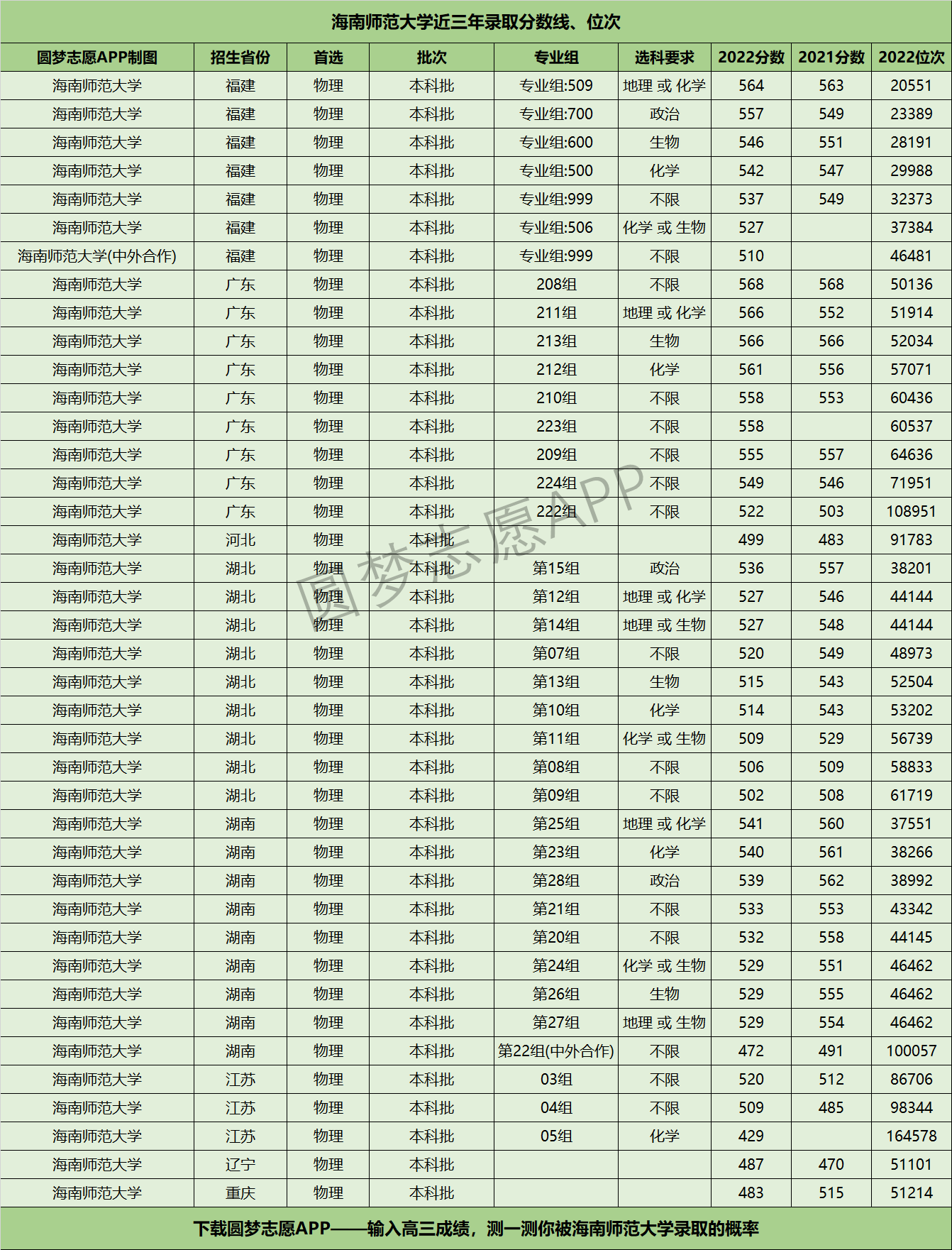 三、海南师范大学近年录取分数线及位次【首选物理版】