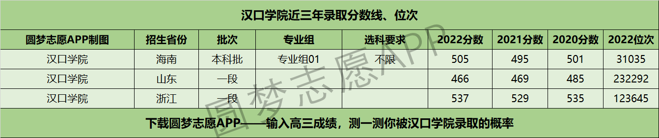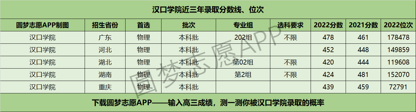 三、汉口学院近年录取分数线及位次【首选物理版】