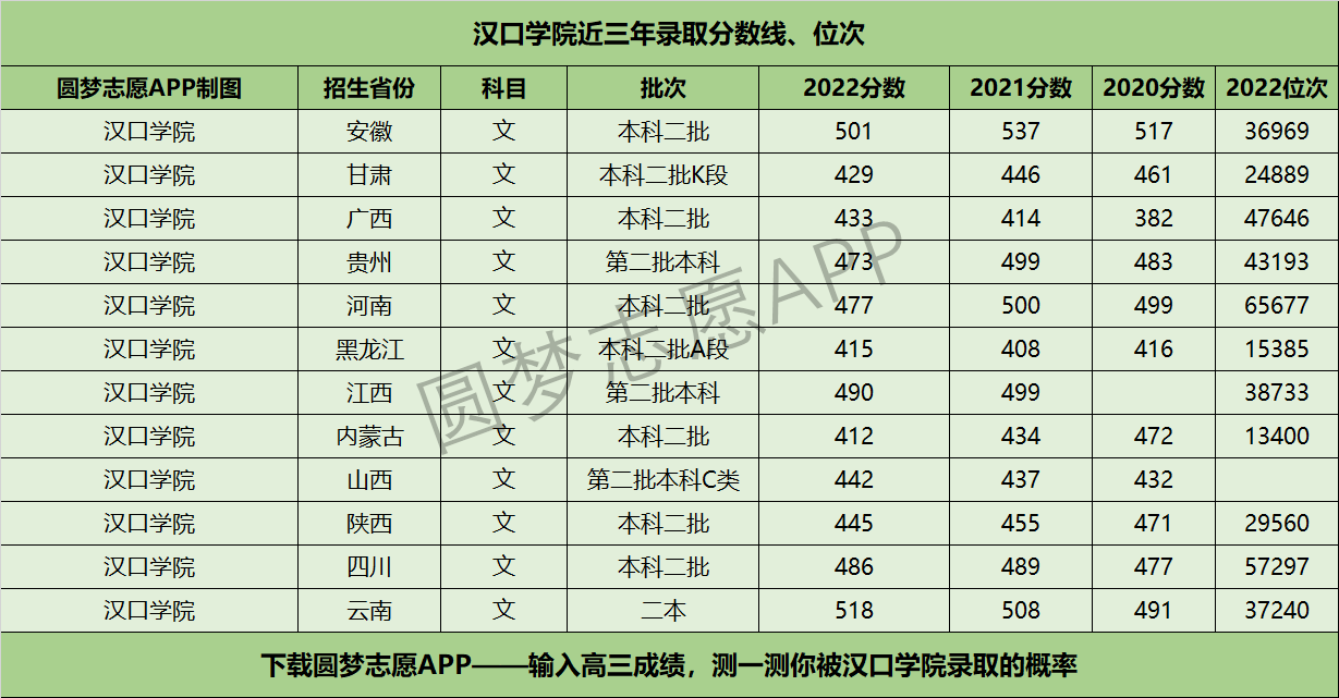 二、汉口学院近三年录取分数线及位次【文科版】