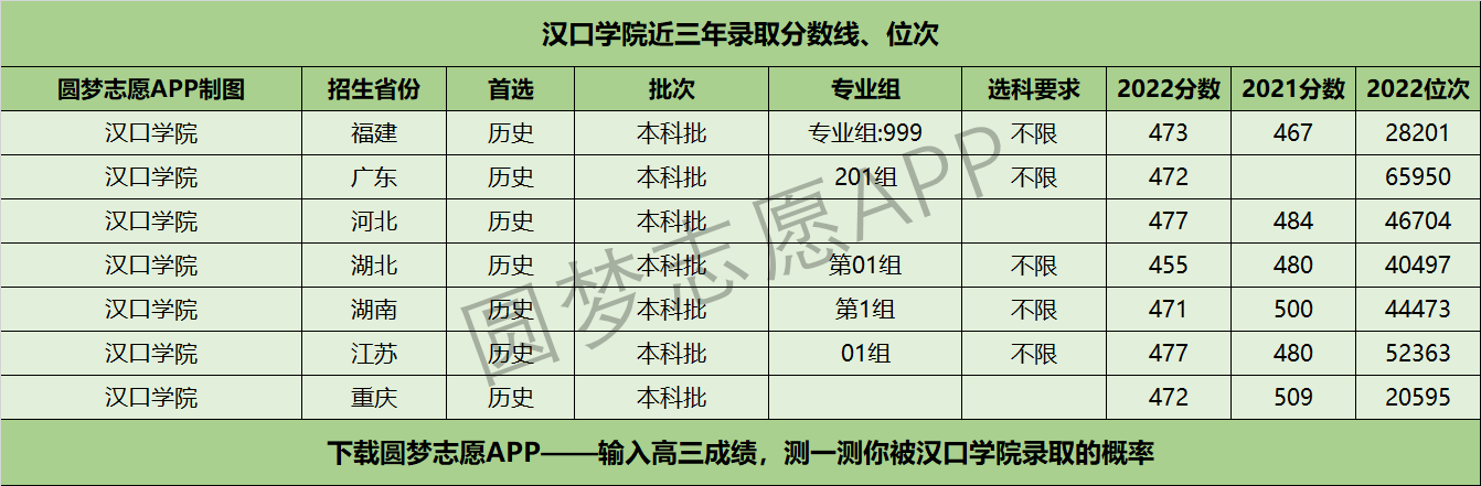四、汉口学院近年录取分数线及位次【首选历史版】