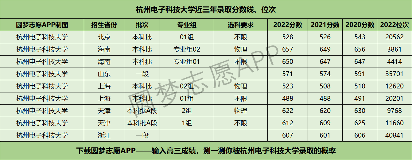 五、杭州电子科技大学近年录取分数线及位次【6选3省份】