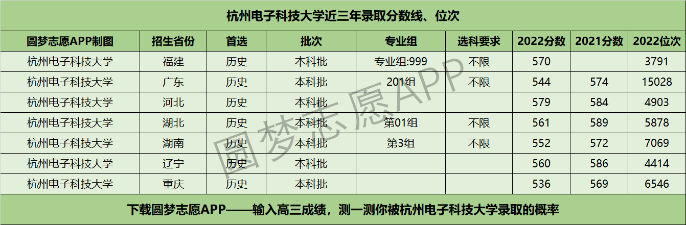 四、杭州电子科技大学近年录取分数线及位次【首选历史版】