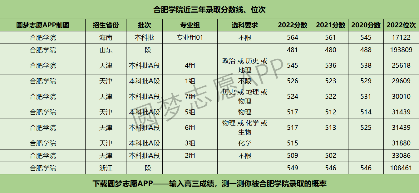 五、合肥学院近年录取分数线及位次【6选3省份】