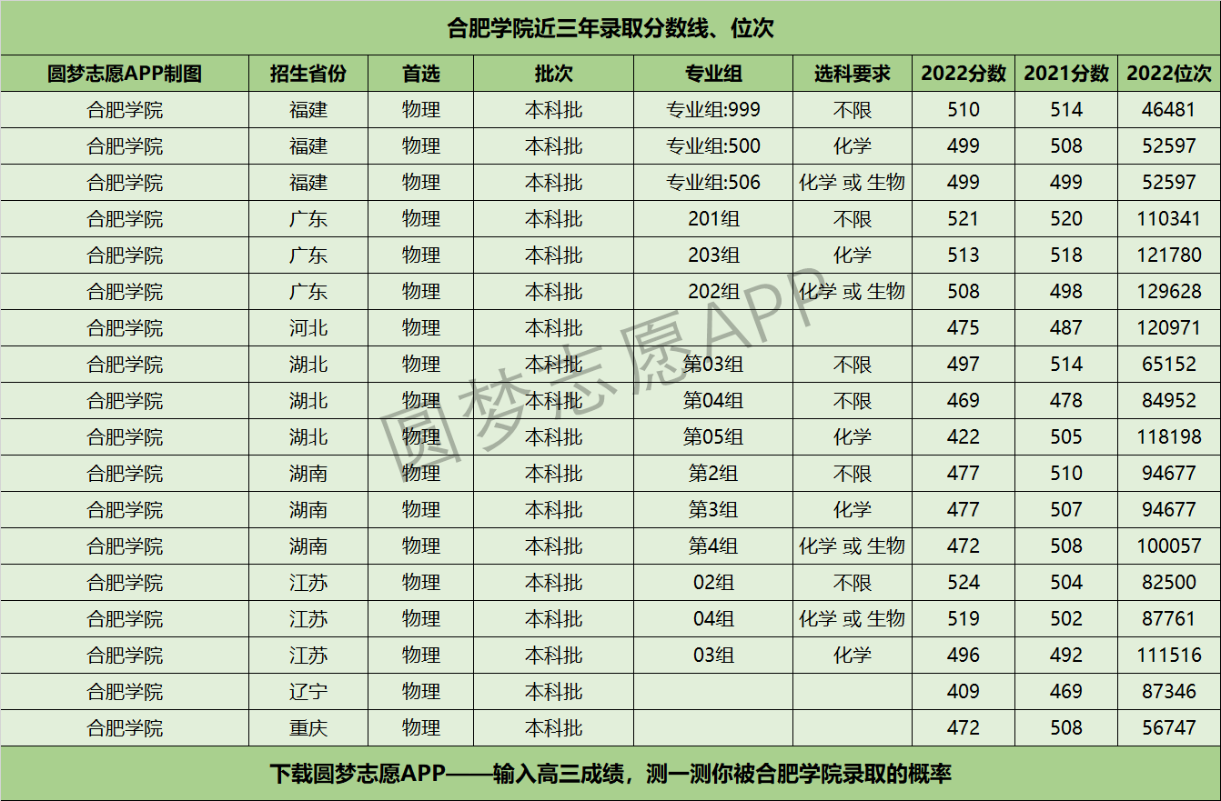 三、合肥学院近年录取分数线及位次【首选物理版】