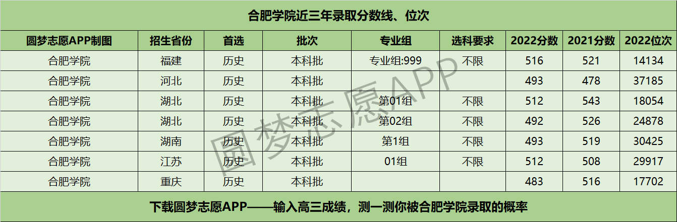四、合肥学院近年录取分数线及位次【首选历史版】