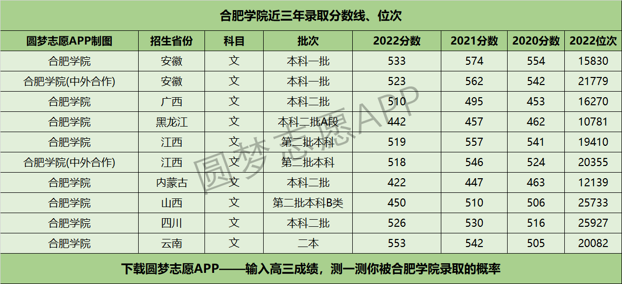 二、合肥学院近三年录取分数线及位次【文科版】