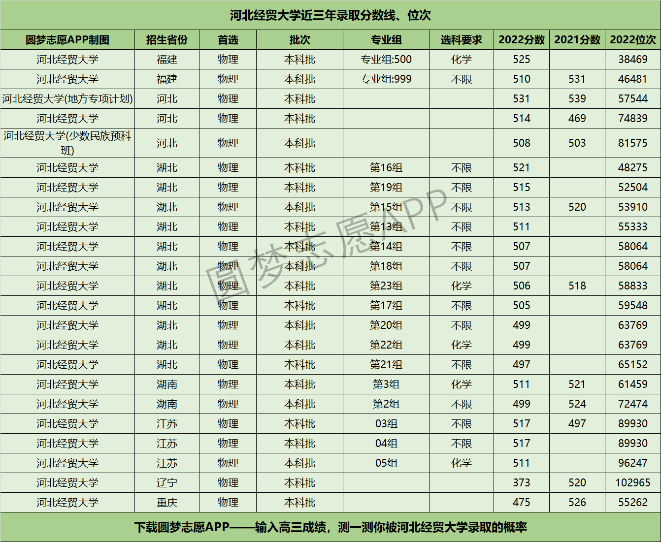 三、河北经贸大学近年录取分数线及位次【首选物理版】
