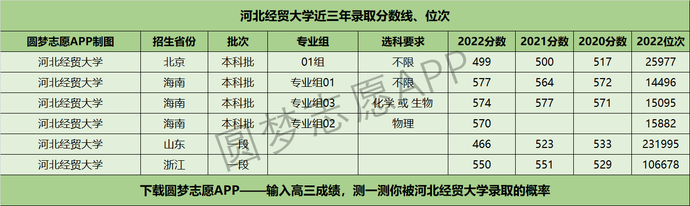 五、河北经贸大学近年录取分数线及位次【6选3省份】