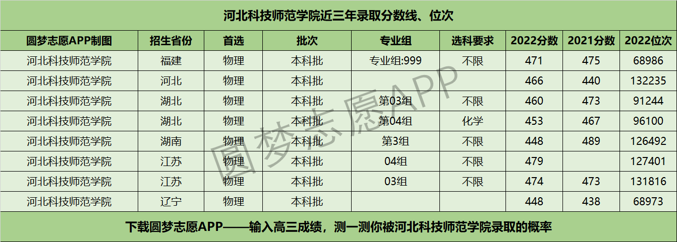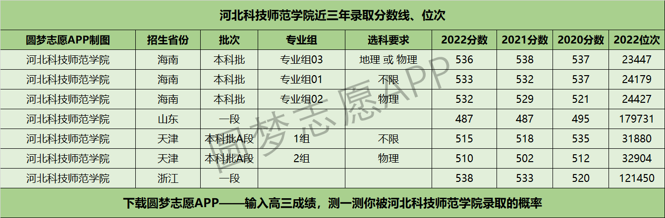 三、河北科技师范学院近年录取分数线及位次【首选物理版】