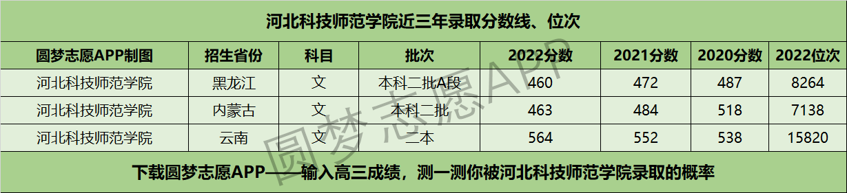二、河北科技师范学院近三年录取分数线及位次【文科版】