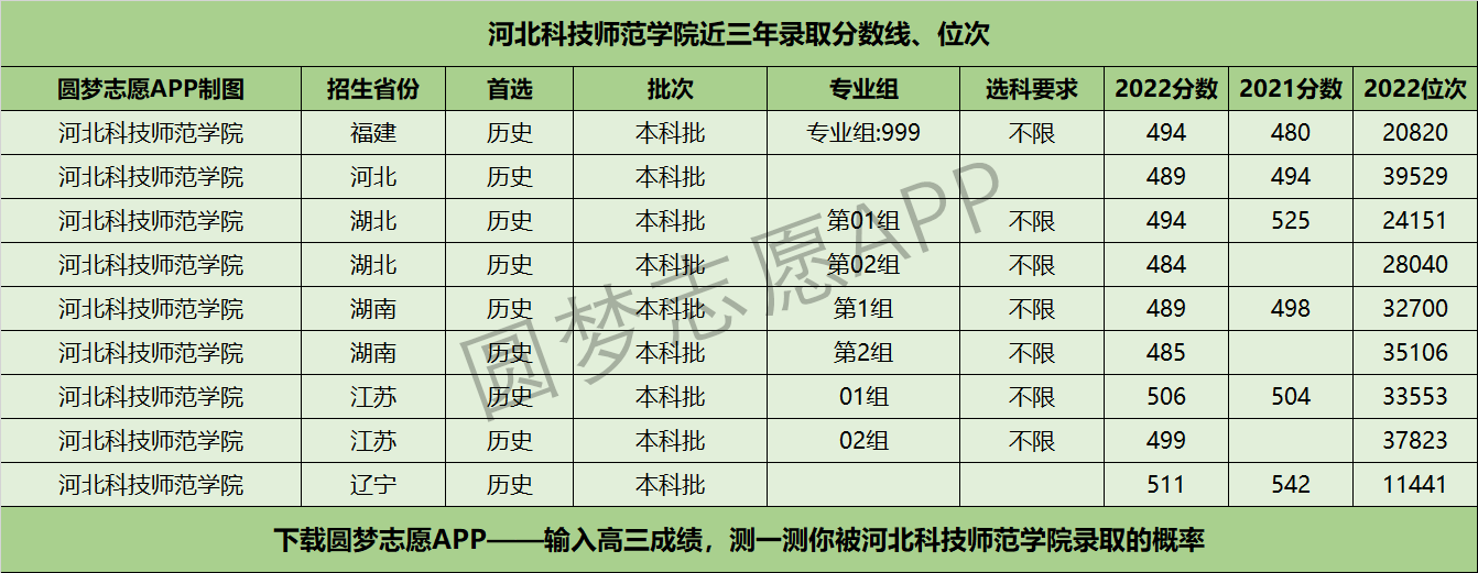 四、河北科技师范学院近年录取分数线及位次【首选历史版】