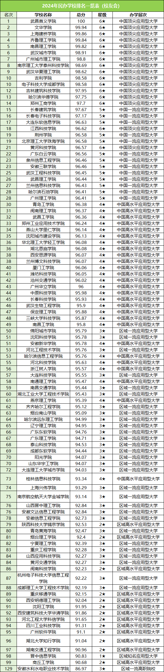 小编结合院校在各省的招生批次和录取分数,整理了排名前100的民办大学名单,如下: