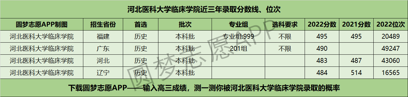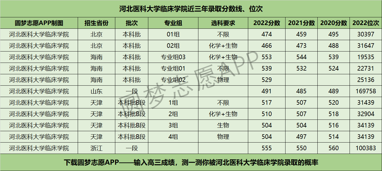 四、河北医科大学临床学院近年录取分数线及位次【首选历史版】