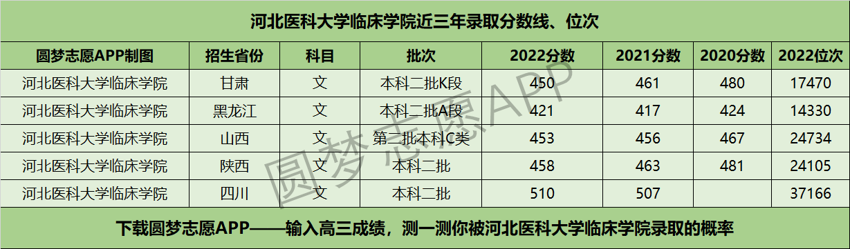 二、河北医科大学临床学院近三年录取分数线及位次【文科版】