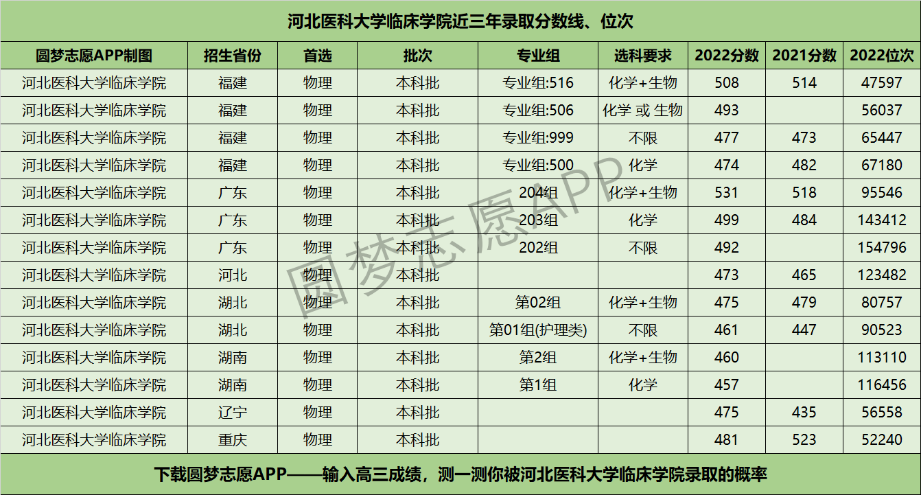 三、河北医科大学临床学院近年录取分数线及位次【首选物理版】
