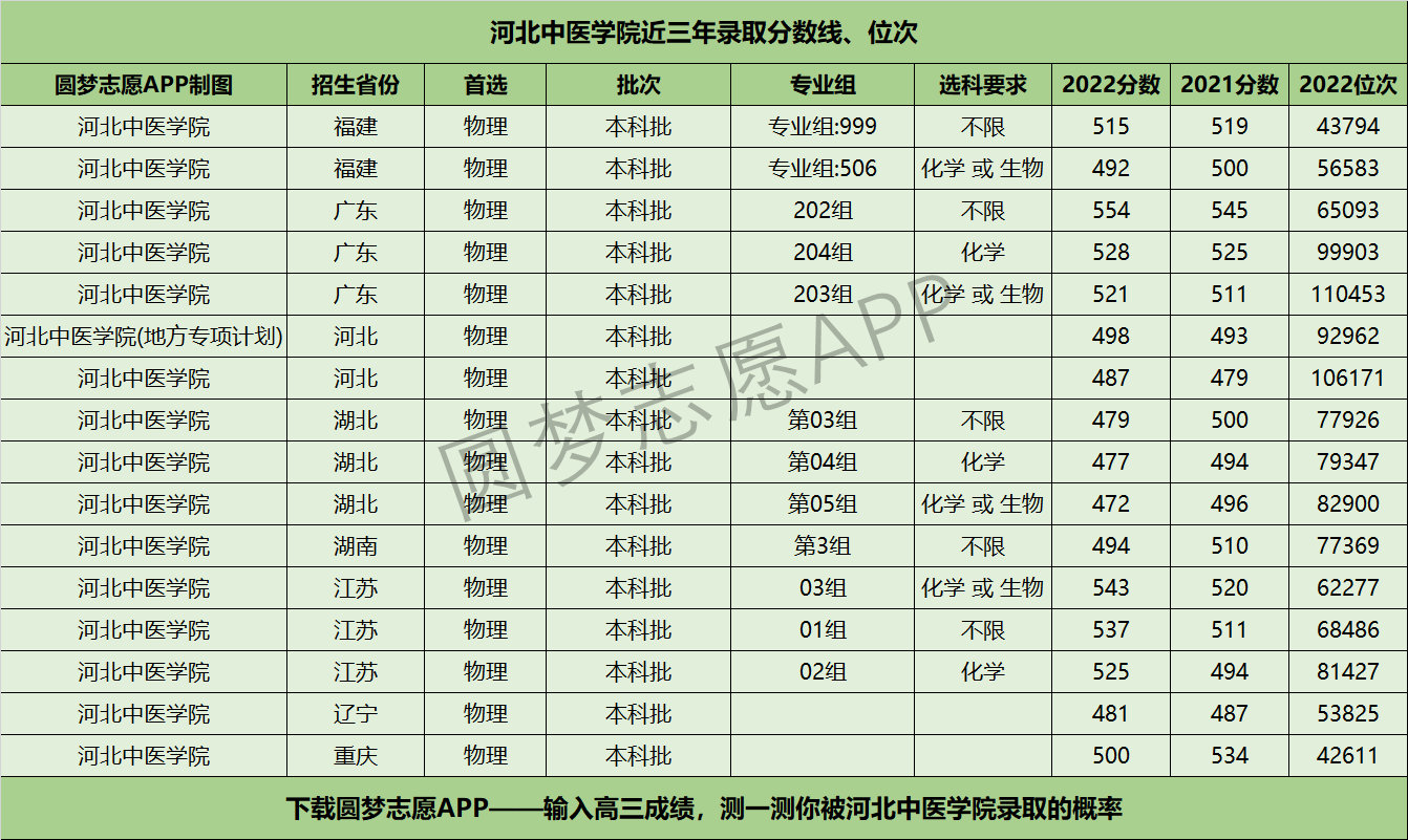 三、河北中医学院近年录取分数线及位次【首选物理版】