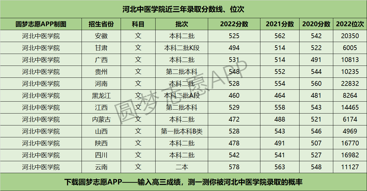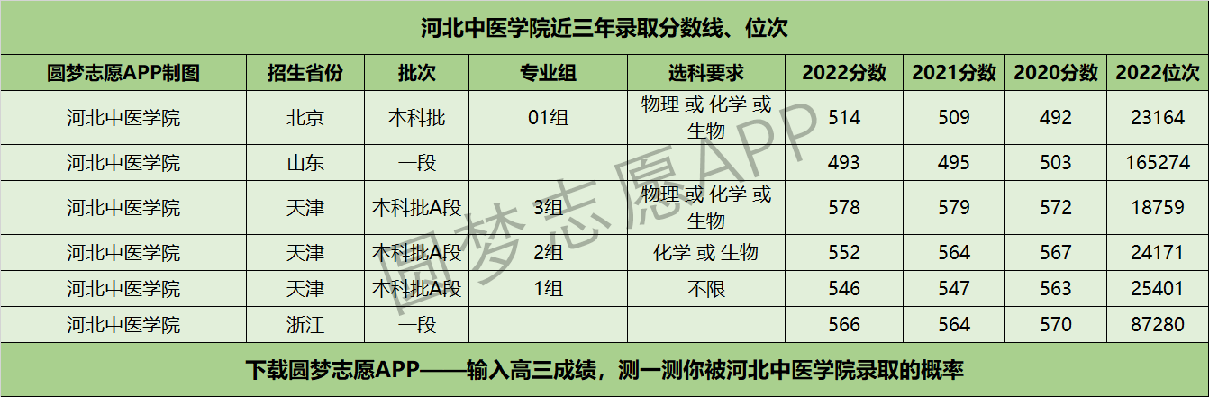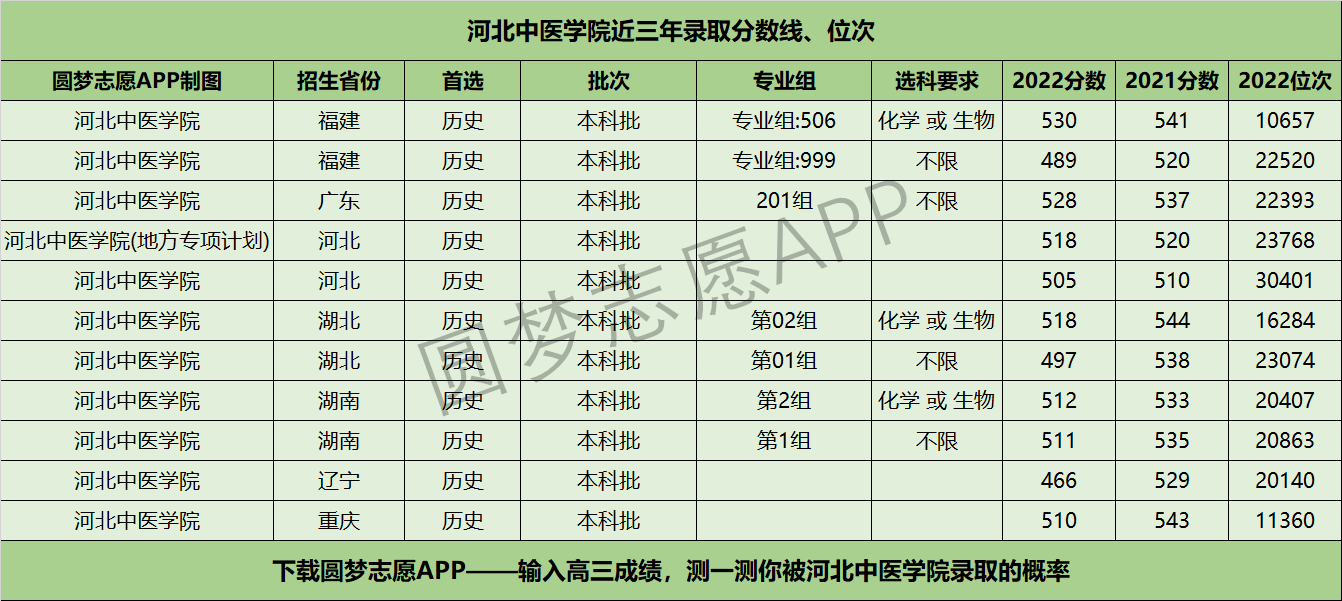 四、河北中医学院近年录取分数线及位次【首选历史版】