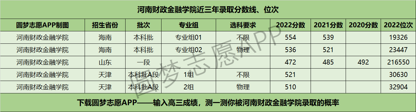 四、河南财政金融学院近年录取分数线及位次【首选历史版】