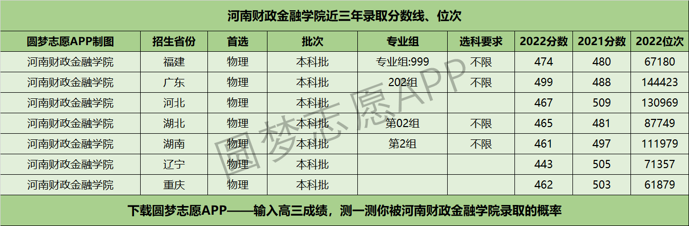 三、河南财政金融学院近年录取分数线及位次【首选物理版】