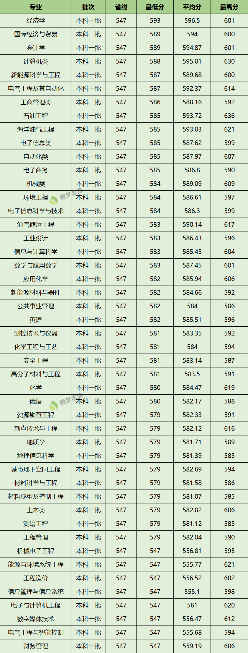 西南石油大学本科一批2019年在四川收分最高的理科专业为经济学,最低分为593分;收分最低的专业为信息管理与信息系统,最低分为547分。