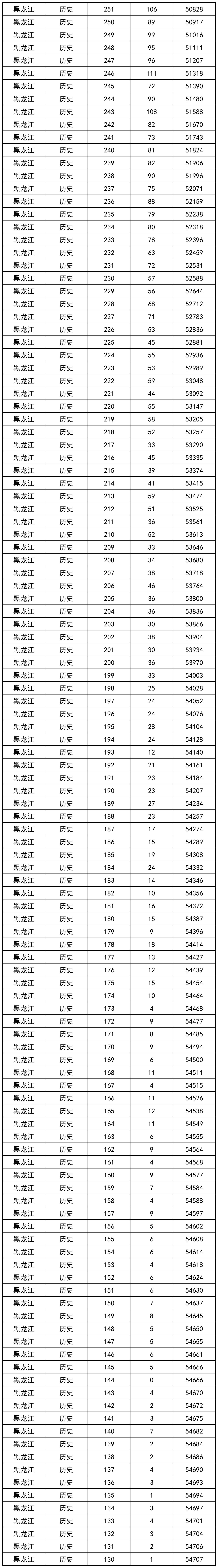2、2025年黑龙江历史组一分一段表