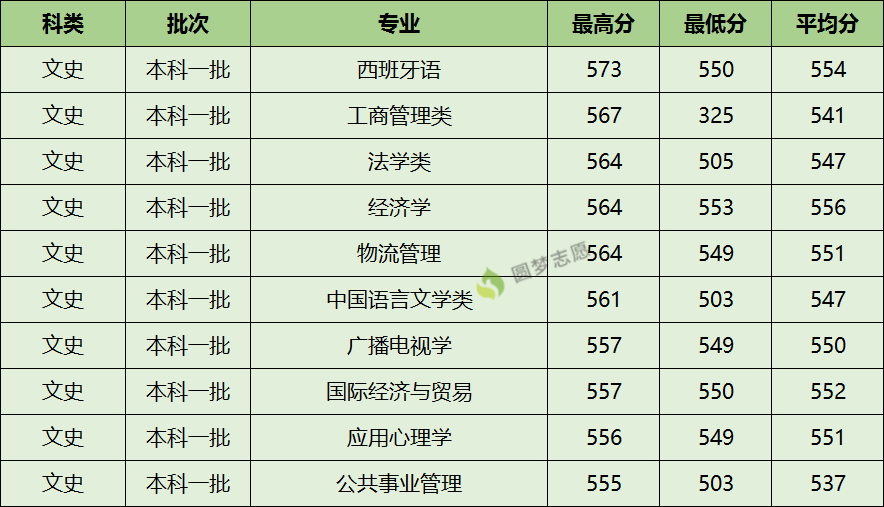 西南科技大学2019年在四川收分最高的文科专业为西班牙语,最高分为573分,最低分为550分;收分最低的专业为应用心理学,最高分为556分,最低分为549分。(不含特殊专业)
