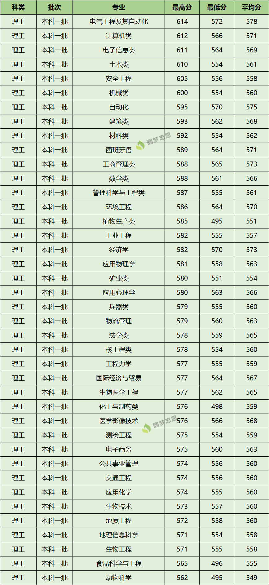 西南科技大学2019年在四川收分最高的理科专业为电气工程及其自动化,最高分为614分,最低分为572分;收分最低的专业为地理信息科学,最高分为571分,最低分为554分。(不含特殊专业)