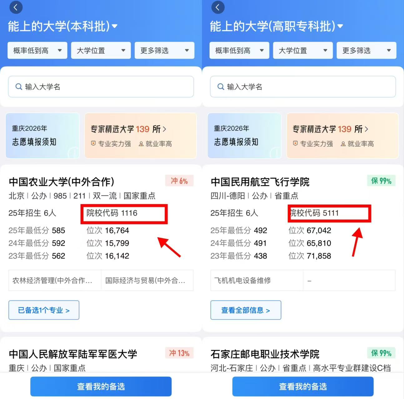 考生们如果觉得以上院校代码的查询方式比较复杂,也可以进入圆梦志愿APP查看各院校在本省的代码,在2026年各省招生计划更新后,院校代码也会同步更新。