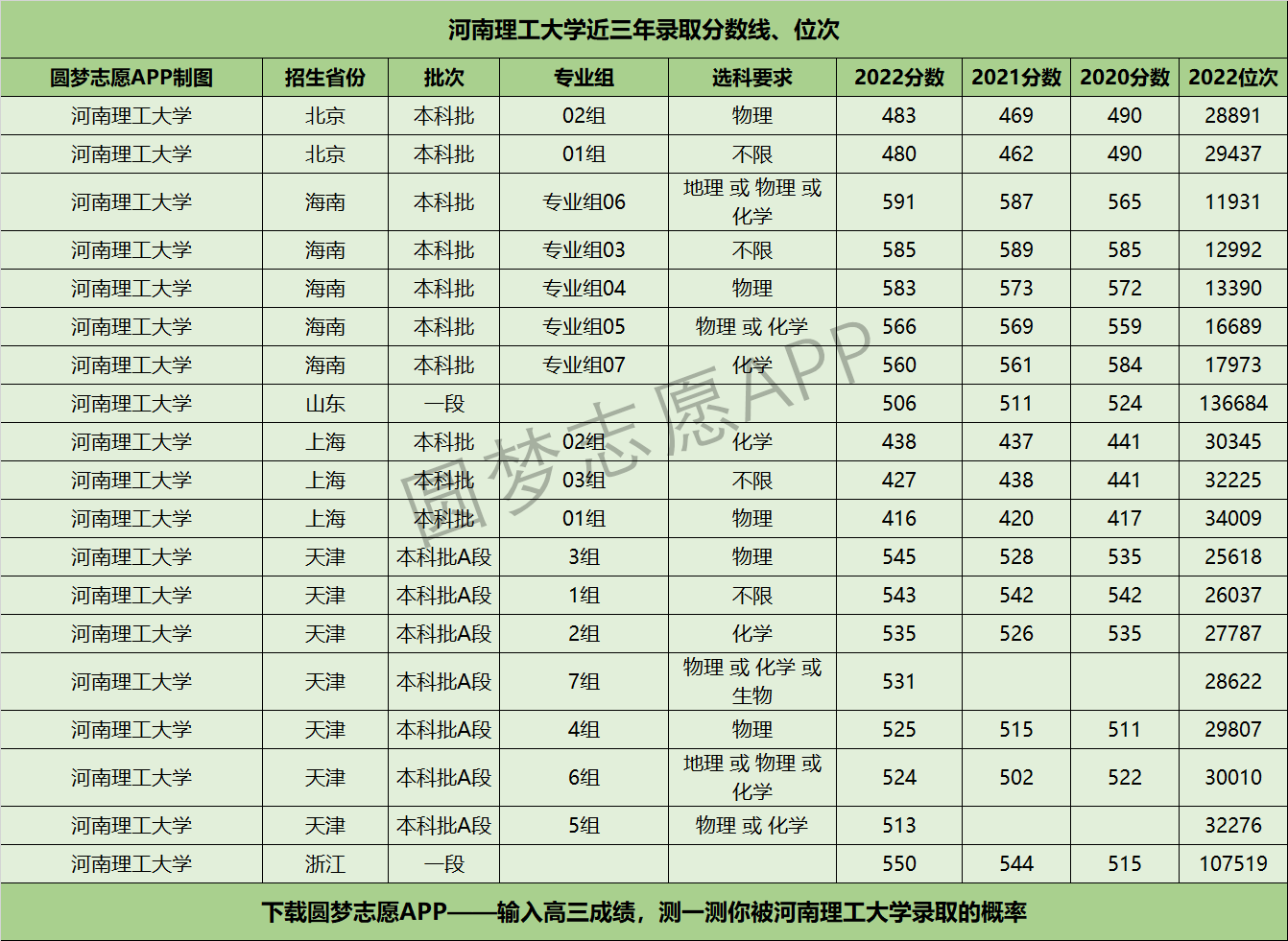 三、河南理工大学近年录取分数线及位次【首选物理版】
