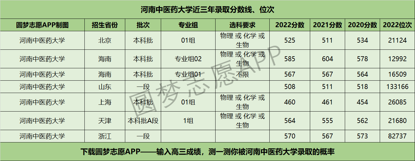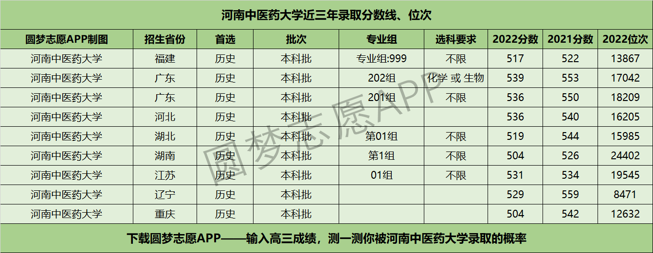 四、河南中医药大学近年录取分数线及位次【首选历史版】