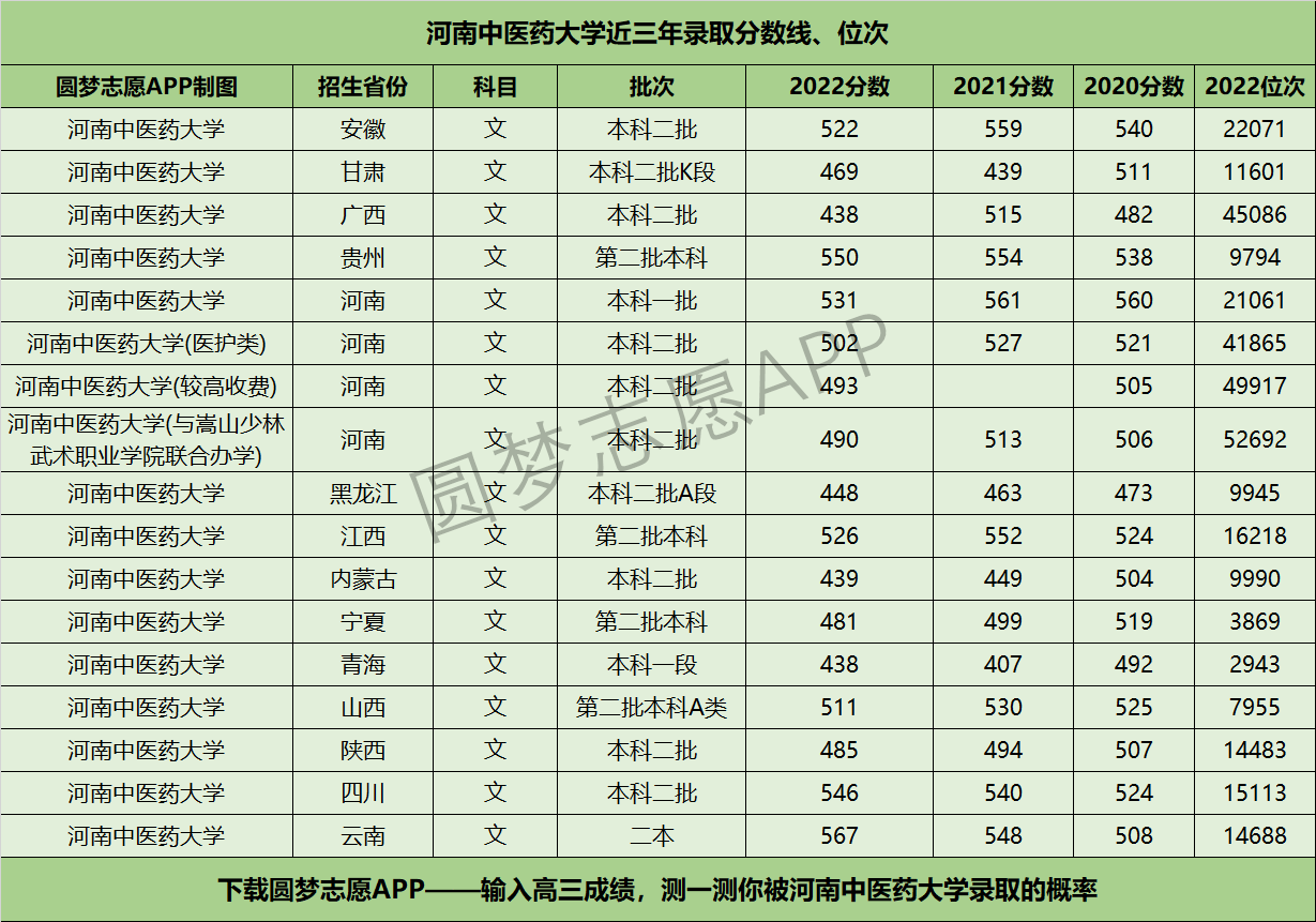 二、河南中医药大学近三年录取分数线及位次【文科版】