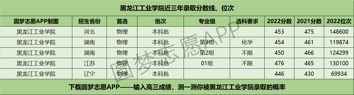 三、黑龙江工业学院近年录取分数线及位次【首选物理版】