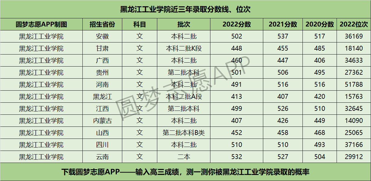 二、黑龙江工业学院近三年录取分数线及位次【文科版】