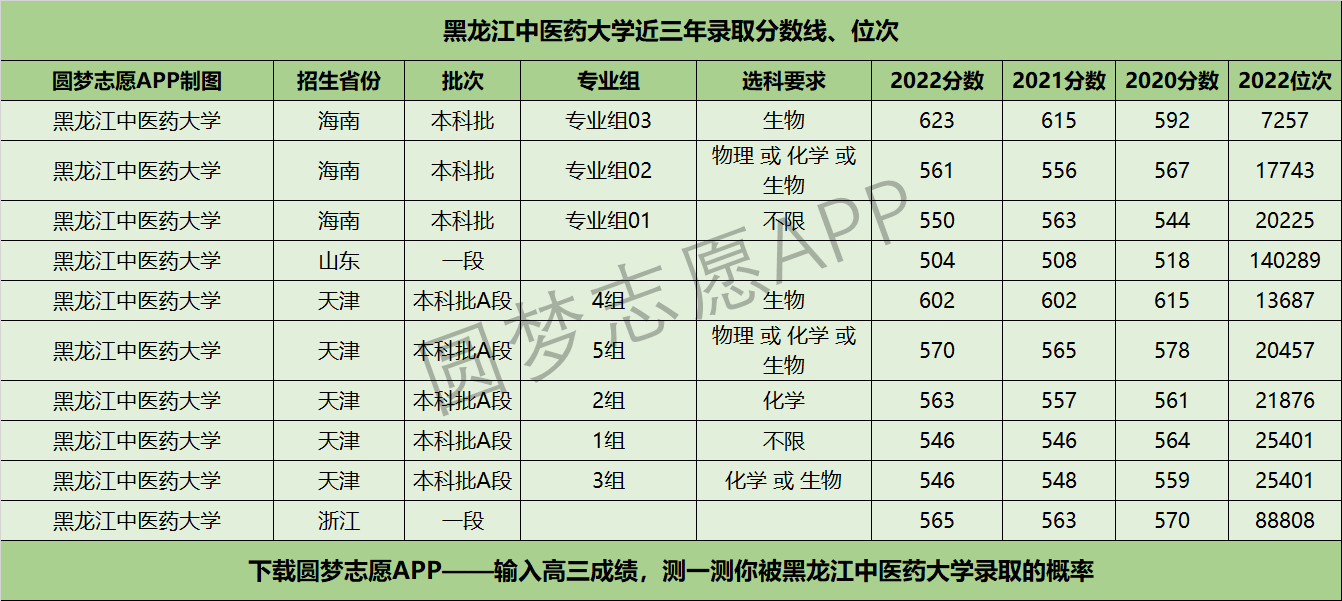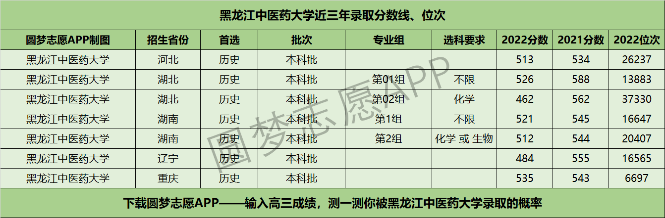 四、黑龙江中医药大学近年录取分数线及位次【首选历史版】