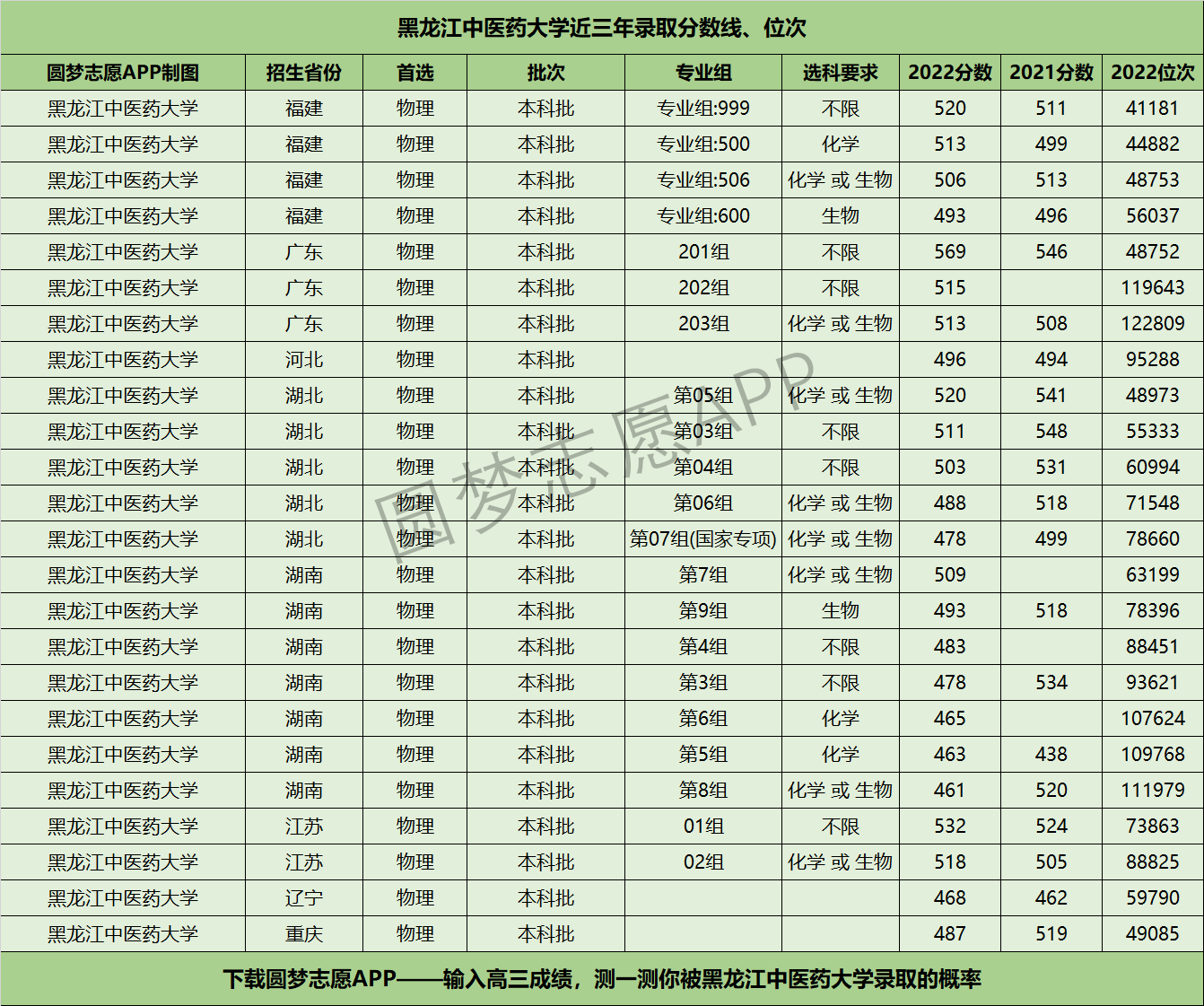 三、黑龙江中医药大学近年录取分数线及位次【首选物理版】