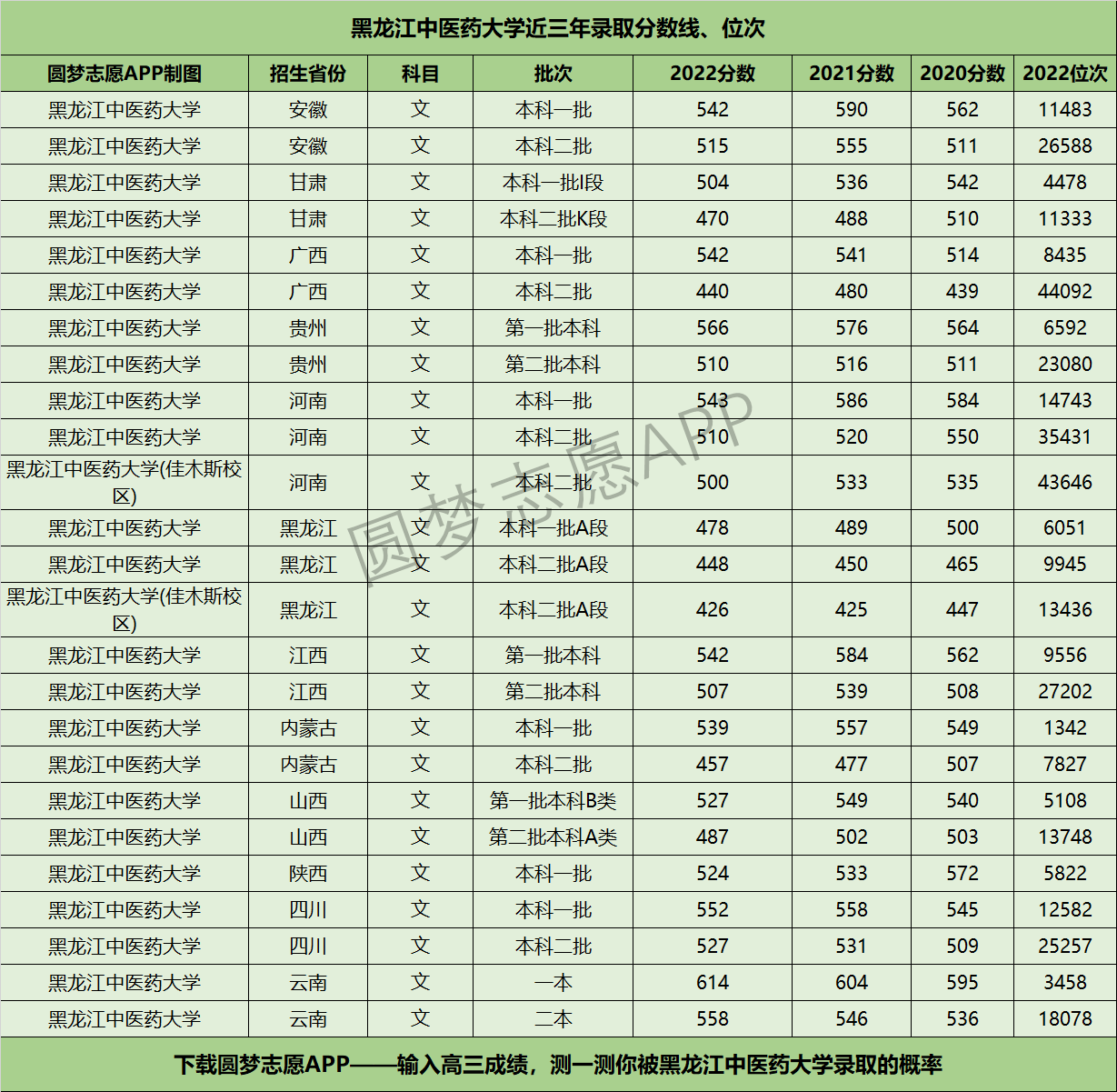 二、黑龙江中医药大学近三年录取分数线及位次【文科版】