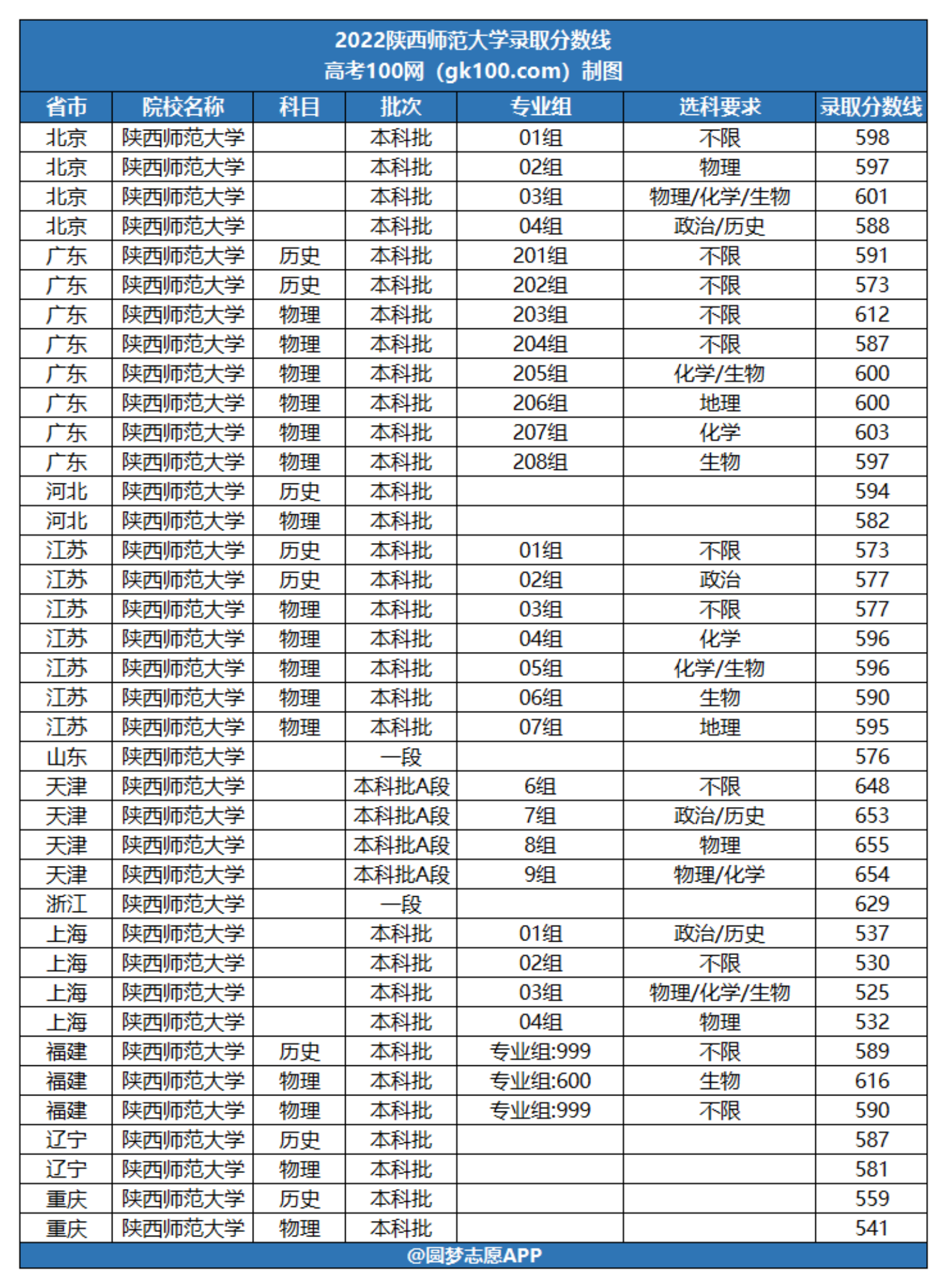 2022陕西师范大学在北京专业组01录取分数线为598分、专业组02录取分数线为597分、专业组03录取分数线为601分;