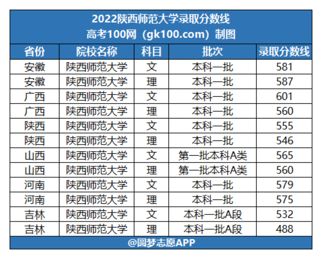 2022陕西师范大学在山西文科录取分数线为565分、理科录取分数线为560分;