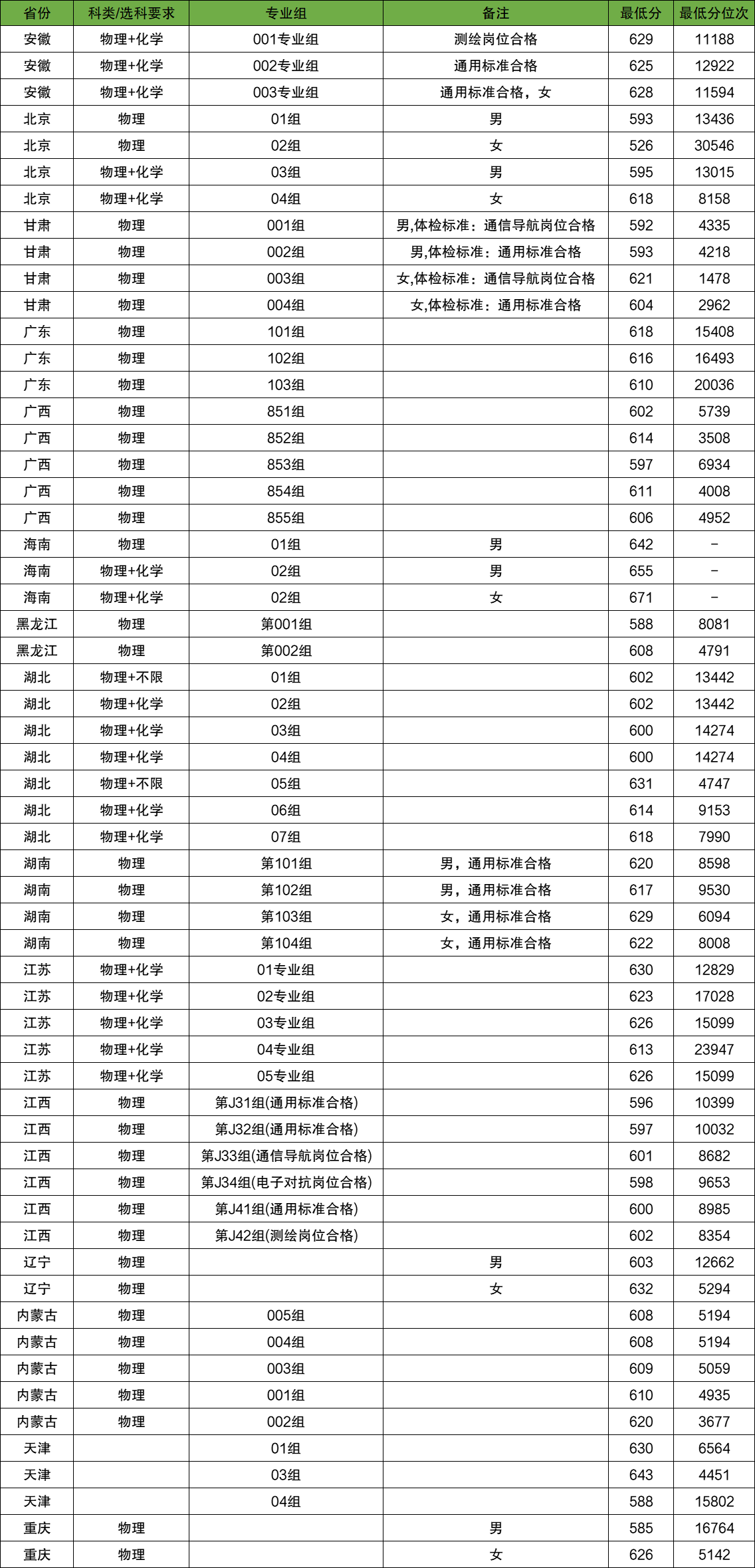 军事航天部队航天工程大学04组,2025年女生投档最低618分。