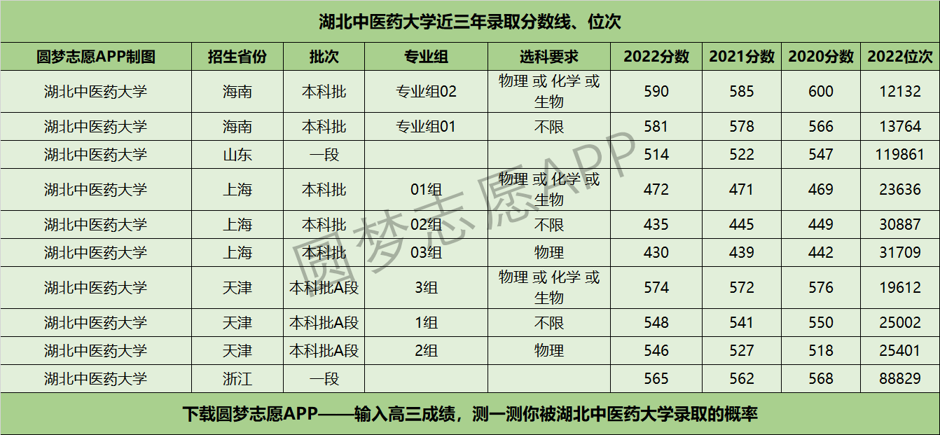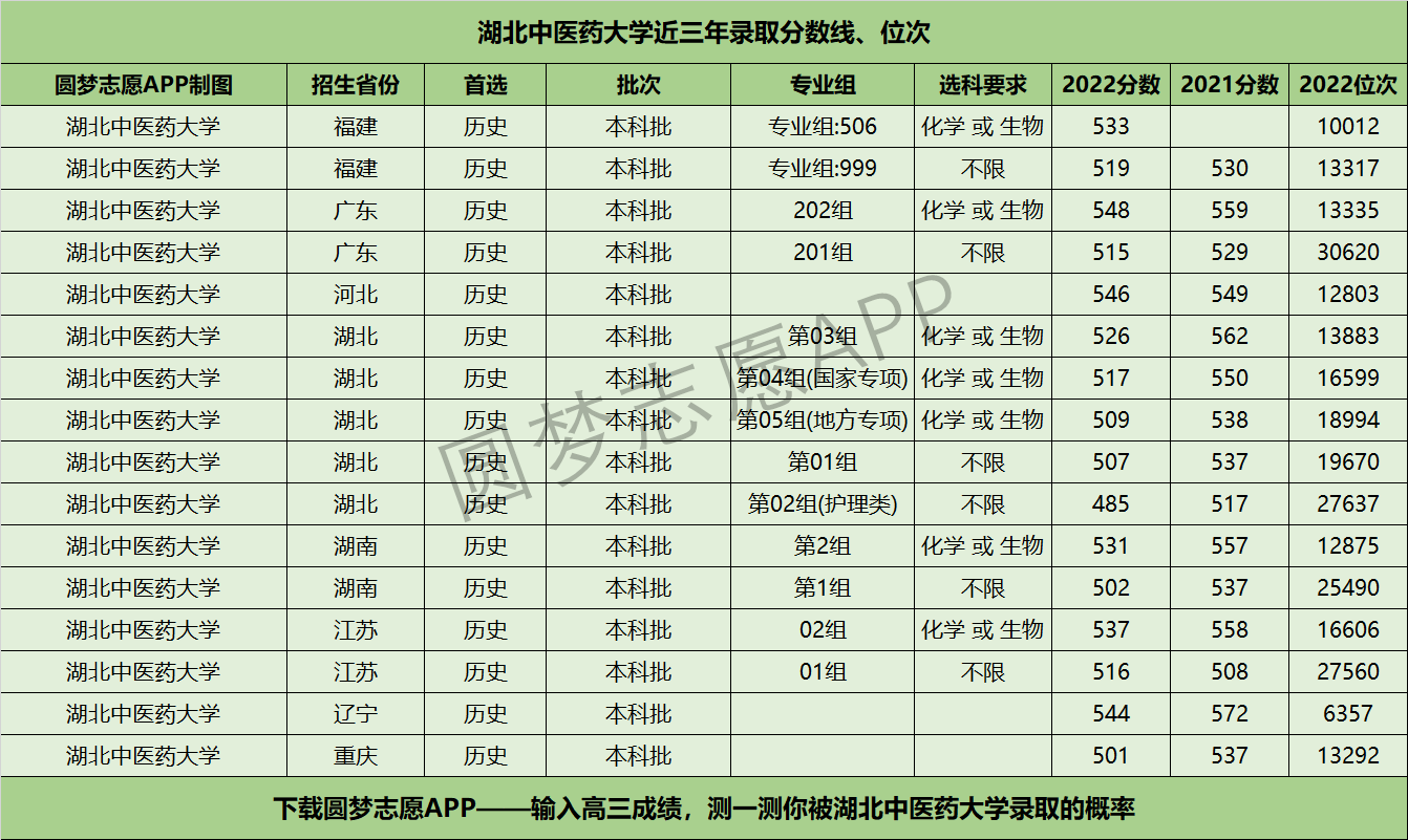 四、湖北中医药大学近年录取分数线及位次【首选历史版】
