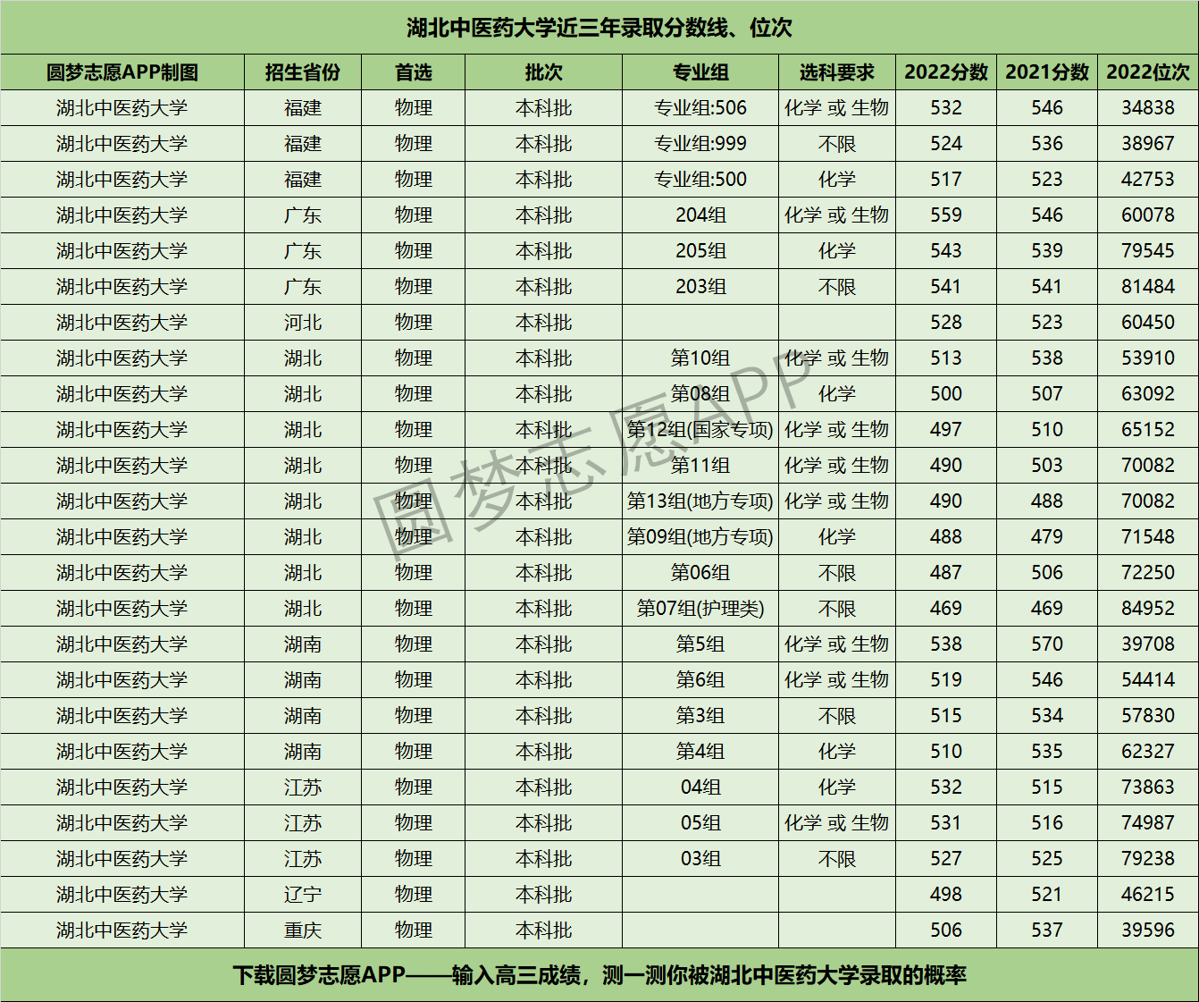 三、湖北中医药大学近年录取分数线及位次【首选物理版】