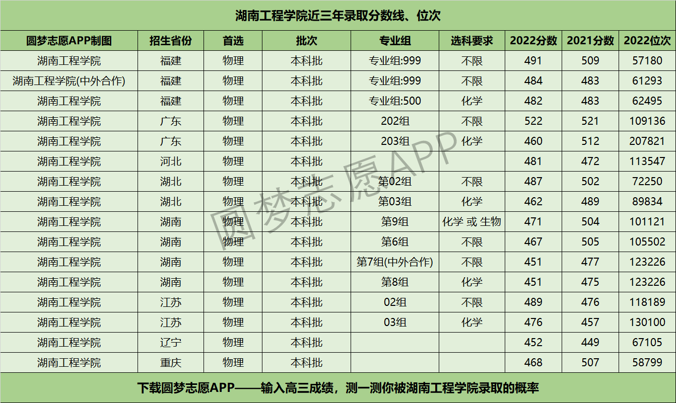 三、湖南工程学院近年录取分数线及位次【首选物理版】
